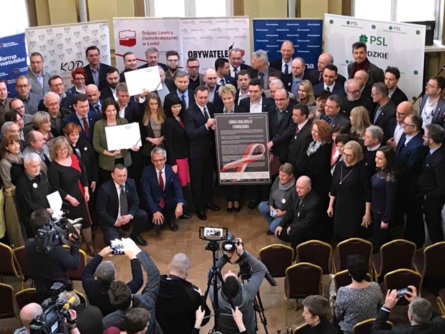 Przedstawiciele czterech ugrupowań opozycyjnych i dwóch organizacji pozarządowych zebrali się we wtorek 27 marca w siedzibie Towarzystwa Kredytowego w Łodzi, mieszczącego się przy ul. Pomorskiej, by wspólnie podpisać "Łódzką Deklarację Samorządową".
