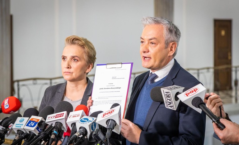 - Składamy wniosek do prokuratury o podejrzenie popełnienia przestępstwa przez pana posła Grzegorza Tomaszewskiego przestępstwa z art. 230 Kodeksu karnego; które polega na użyciu czy ...